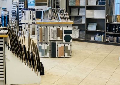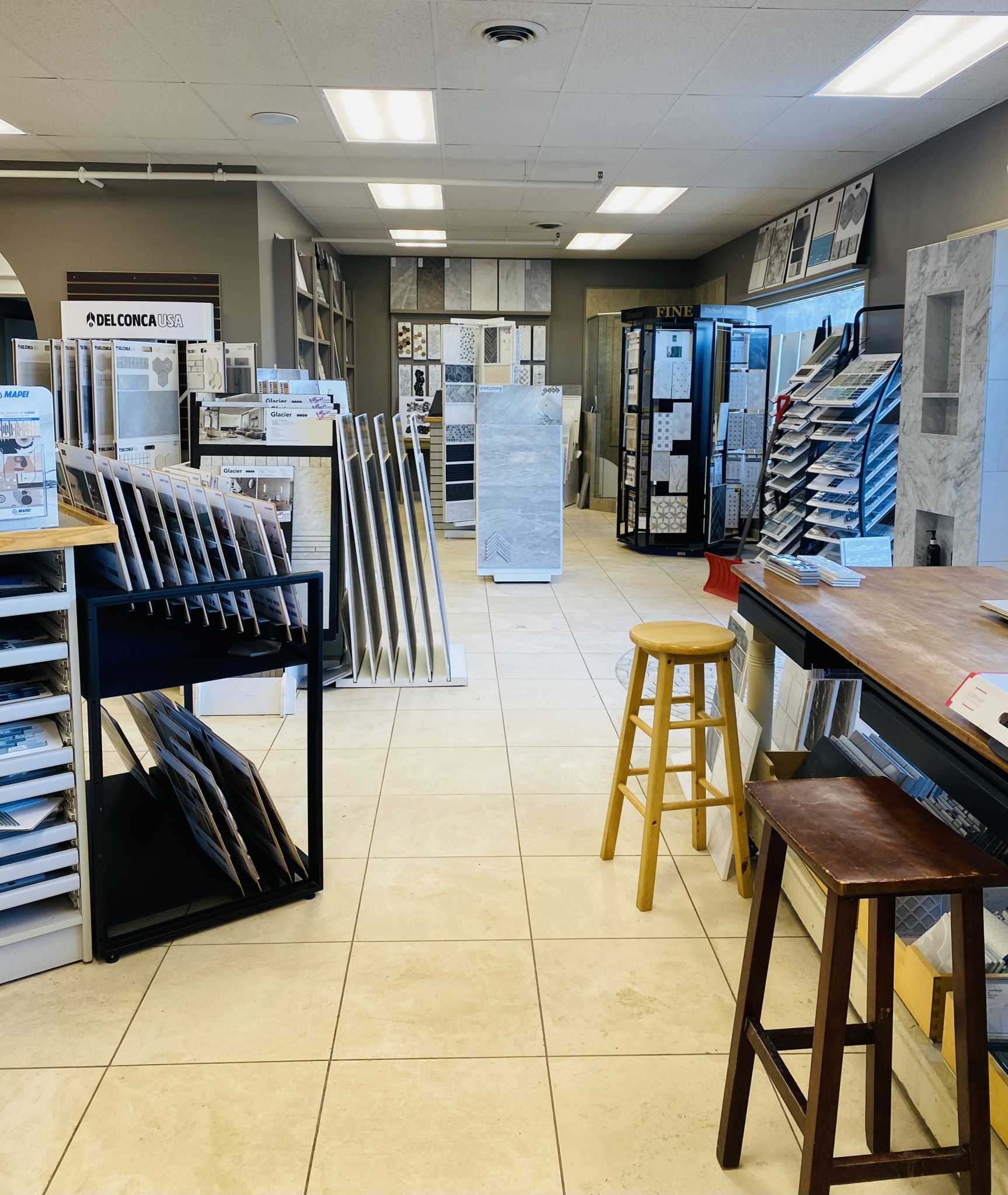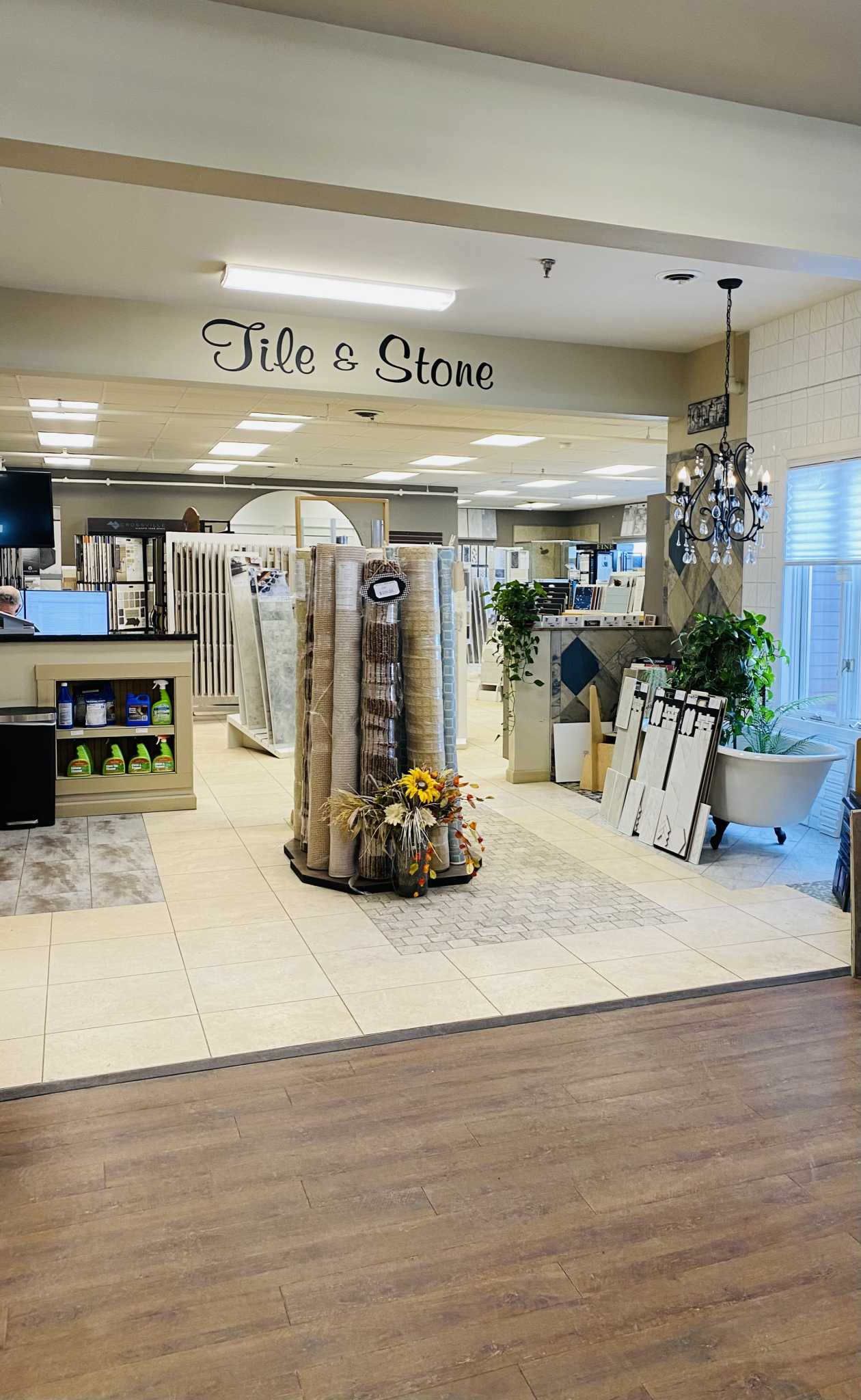 We have one of the largest, most complete showrooms in the area; we are a destination. We offer in-store design consultations, our experienced staff is knowledgeable in all of the products we sell. Product knowledge training occurs regularly. We offer installations for all products by our own skilled installers, or carefully selected subcontractors who are ready to tackle the toughest challenges. Our large 3,000SF showroom consists of product displays and sample installations. Our 2,000SF warehouse houses incoming orders, in-stock setting and installation materials for contractors, and DIY customers. We also stock sheet vinyl, carpet remnants, and an always changing tile bargain area. We display: tile, wood, laminate, vinyl products, Marmoleum, carpet, area rugs, and window coverings. Our showroom vignettes offer clients the opportunity to see products in a “real life” setting.